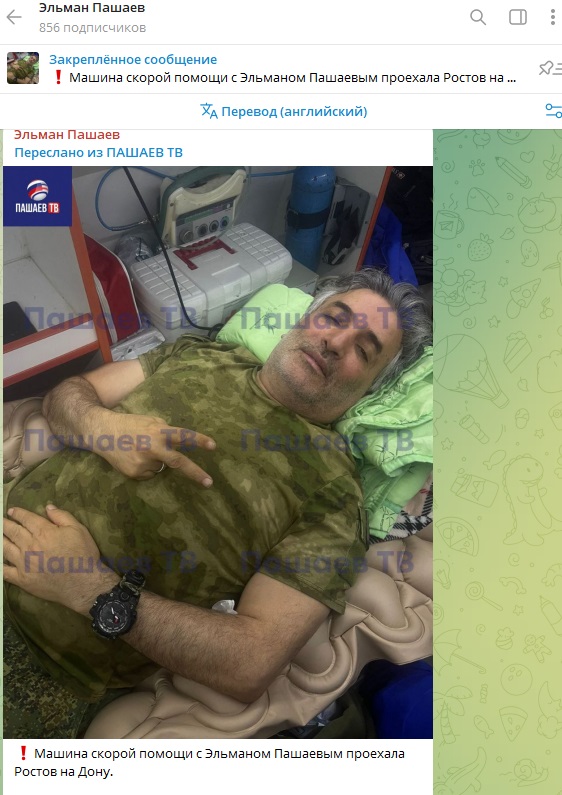 Говорит Пашаев с трудом, однако делать фотографии ему это не мешает. В телеграм-канале в том числе представлены фото вывоза добровольца, по всей видимости, в машине скорой помощи.