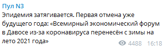 Всемирный экономический форум в Давосе, который должен был состояться в конце января, оказался перенесён на лето 2021 года. Эпидемия затягивается.