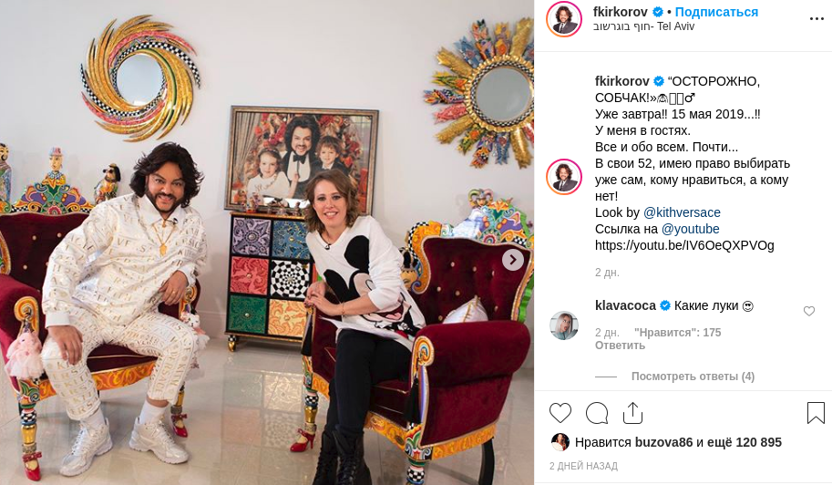 "Ужас!! Кто эту женщину пускает в дом!!!!!!!" - удивляется под постом Киркорова olga._.3052.