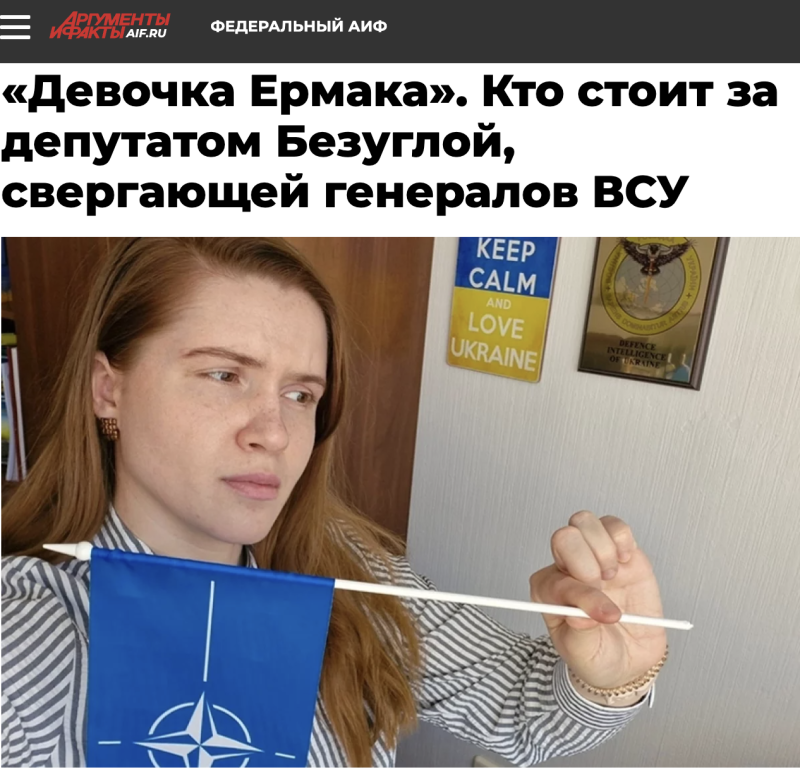 Последние полгода депутат Верховной рады Марьяна Безуглая стала заметной фигурой на украинском политическом поприще. Она приобрела популярность благодаря активной критике военного руководства страны, что привело к отставкам нескольких высокопоставленных военных, включая главкома ВСУ Валерия Залужного и командующего объединёнными силами Юрия Соболя. Наблюдатели отмечают, что офис президента Украины может использовать Безуглую как инструмент давления на генералов, чтобы все негативные последствия связывались с военными, а не с самим и.о. президента страны Владимиром Зеленским.