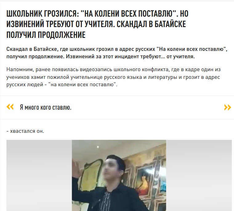Потому что вторая проблема - это агрессия со стороны детей мигрантов. Очень много случаев агрессии в школе. На мой взгляд, мы не обязаны терпеть эту дикость, которая проникает в наши школы вместе с мигрантами. Все, кто учились в школе, наверное, вспомнят школьного хулигана. Одного-двух хулиганов обязательно вспомнят. Но сейчас это просто массовый террор. И террор учителей, и террор учащихся,