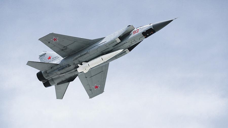 Самолёт МиГ-31, снаряжённый сверхзвуковой ракетой "Кинжал". ФОТО: United Aircraft Corporation/Globallookpress