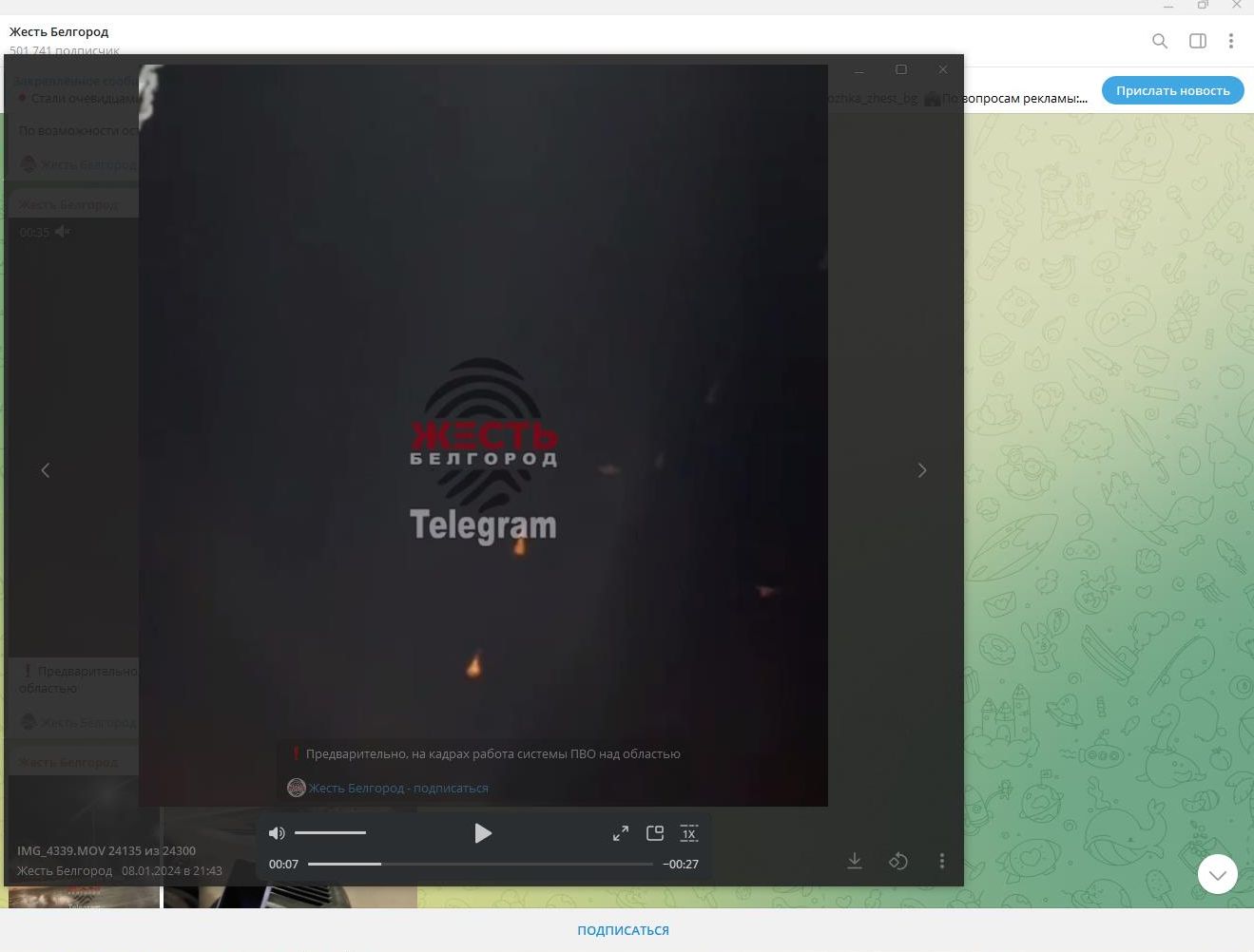 ПВО сбивает украинские ракеты над Белгородом 8 января 2024 года. Скриншот: телеграм-канал "Жесть Белгород"