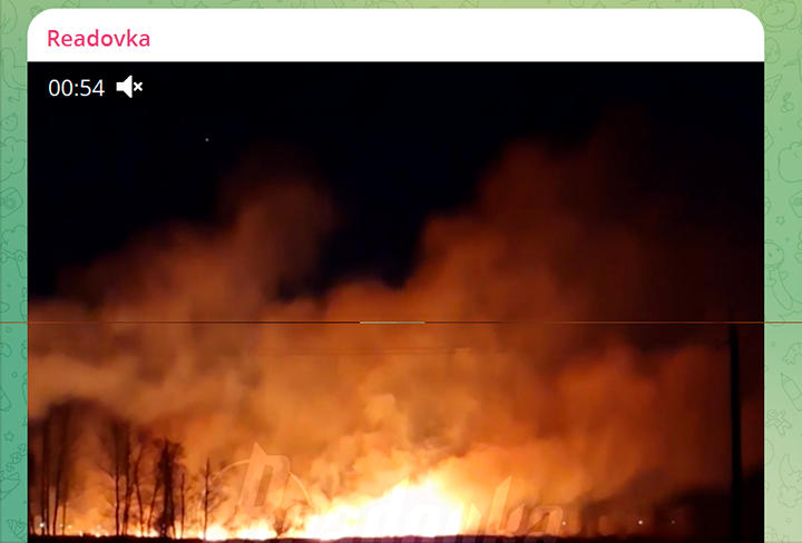 Власти Мерефы заявили, что всему виной сухая трава, а не удар русских. Скрин с Telegram-канала Readovka