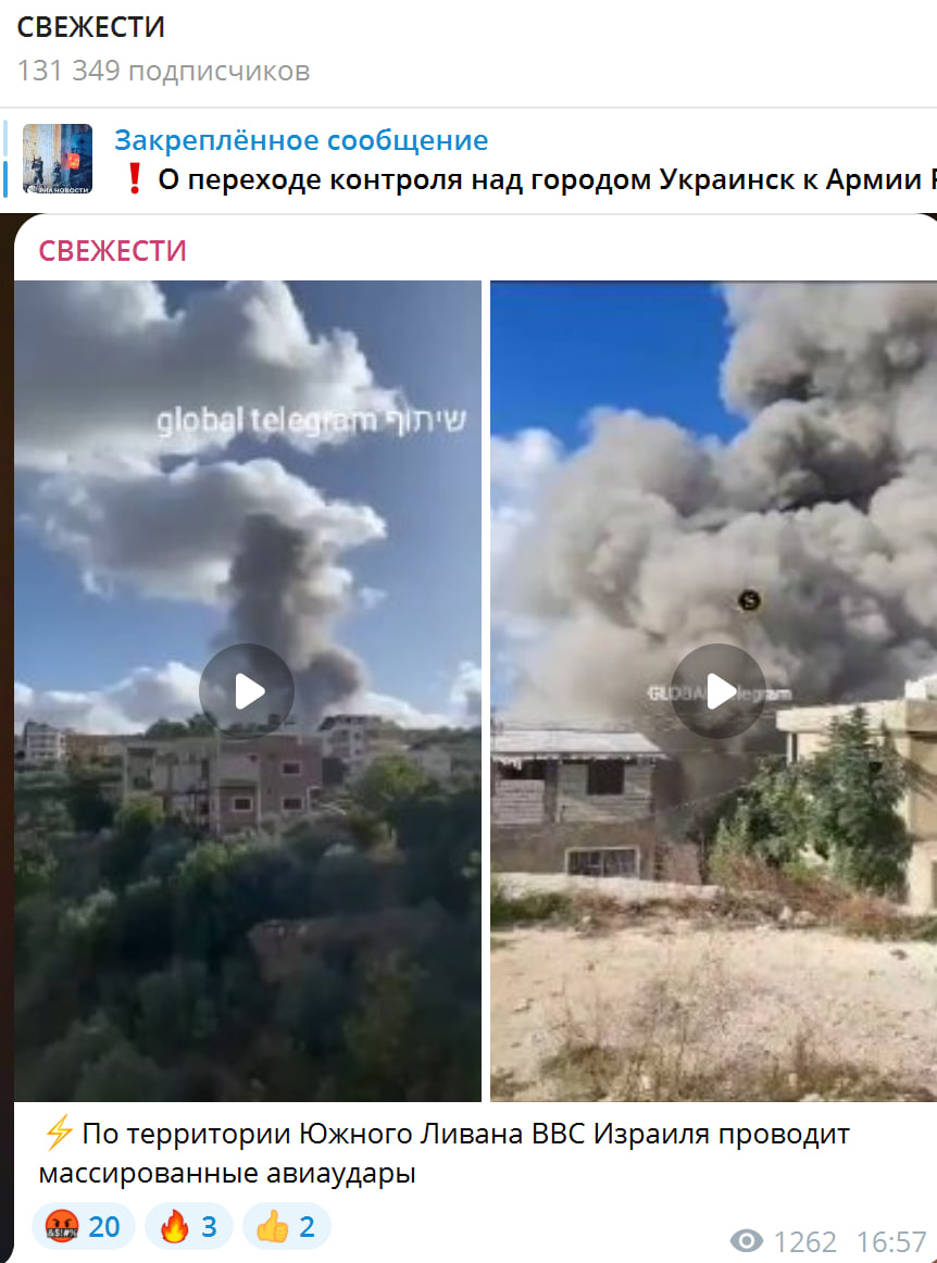 Тем временем в соцсетях появились видеокадры израильских атак на юге Ливана.