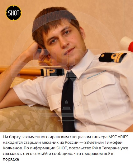 Речь идёт про задержанное Ираном судно MSC Aries, среди членов экипажа которого находился гражданин России Тимофей Колчанов. Иранские силовики отбуксировали взятый под контроль контейнеровоз в порт Бендер-Аббас, где русскому моряку дали возможность связаться с семьей.