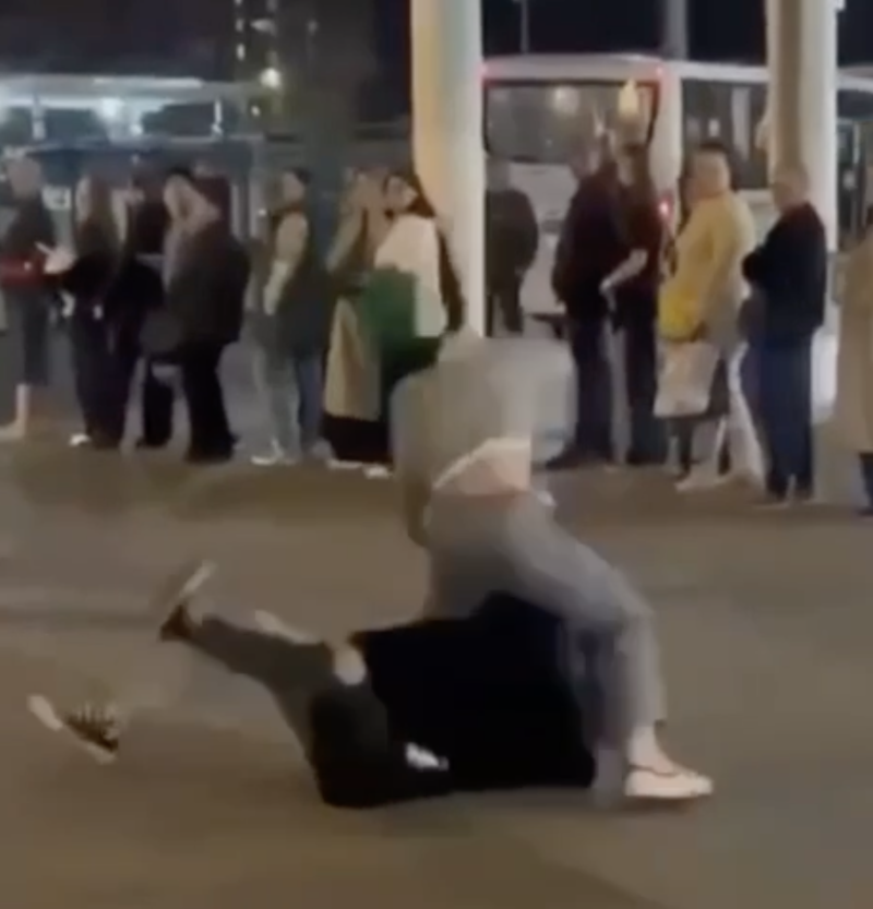 Момент избиения неизвестного. Скриншот: t.me/mnogonazi/20703