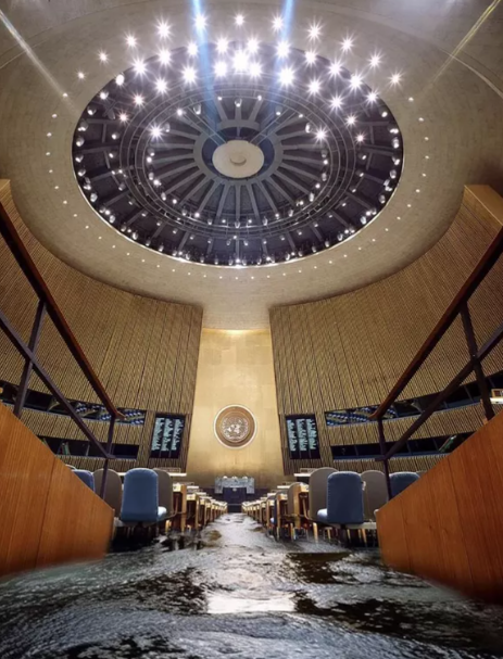 Так, на официальной странице Украины был опубликован снимок "затопленного" зала заседаний Генассамблеи ООН.