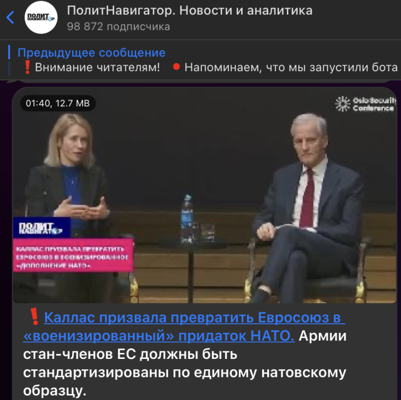 Наконец, на Форуме безопасности в Осло Каллас выступила за милитаризацию ЕС как "придатка НАТО". Отдельная европейская армия - ошибка, считает она: страны уже имеют натовские силы и бюджеты. В кризис главное - единоначалие, а дублирование опасно. Вместо этого ЕС должен стандартизировать армии по натовским образцам, отказавшись от 178 разрозненных систем вооружений. Брюсселю нужно, чтобы НАТО поделилось стандартами и данными - особенно через 23 страны, входящих в обе организации. Так Европа укрепит оборону, дополняя альянс.