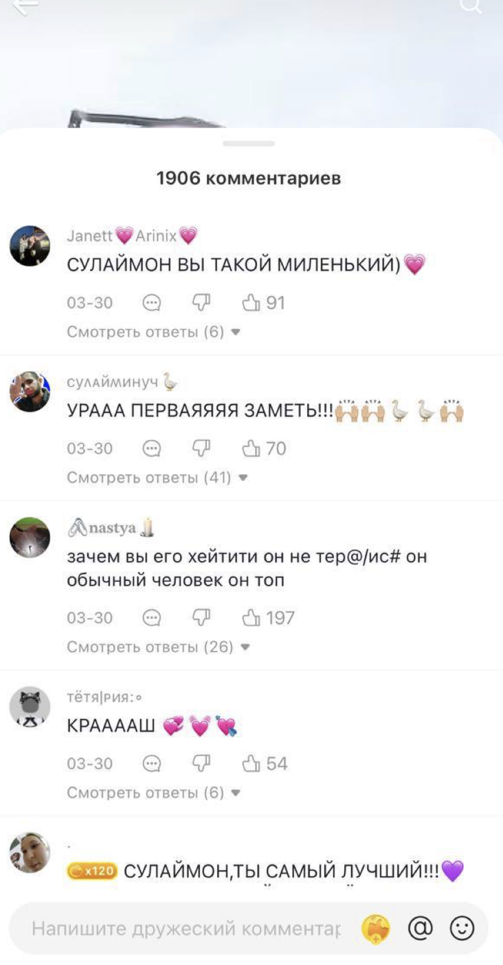 Как удалось выяснить "Многонационалу", зовут интернет-мачо Сулеймон или Султан. Остаётся только догадываться, что у этого человека в личных сообщениях. Во всяком случае, комментарии под его постами полны восторженных слов от маленьких девочек.