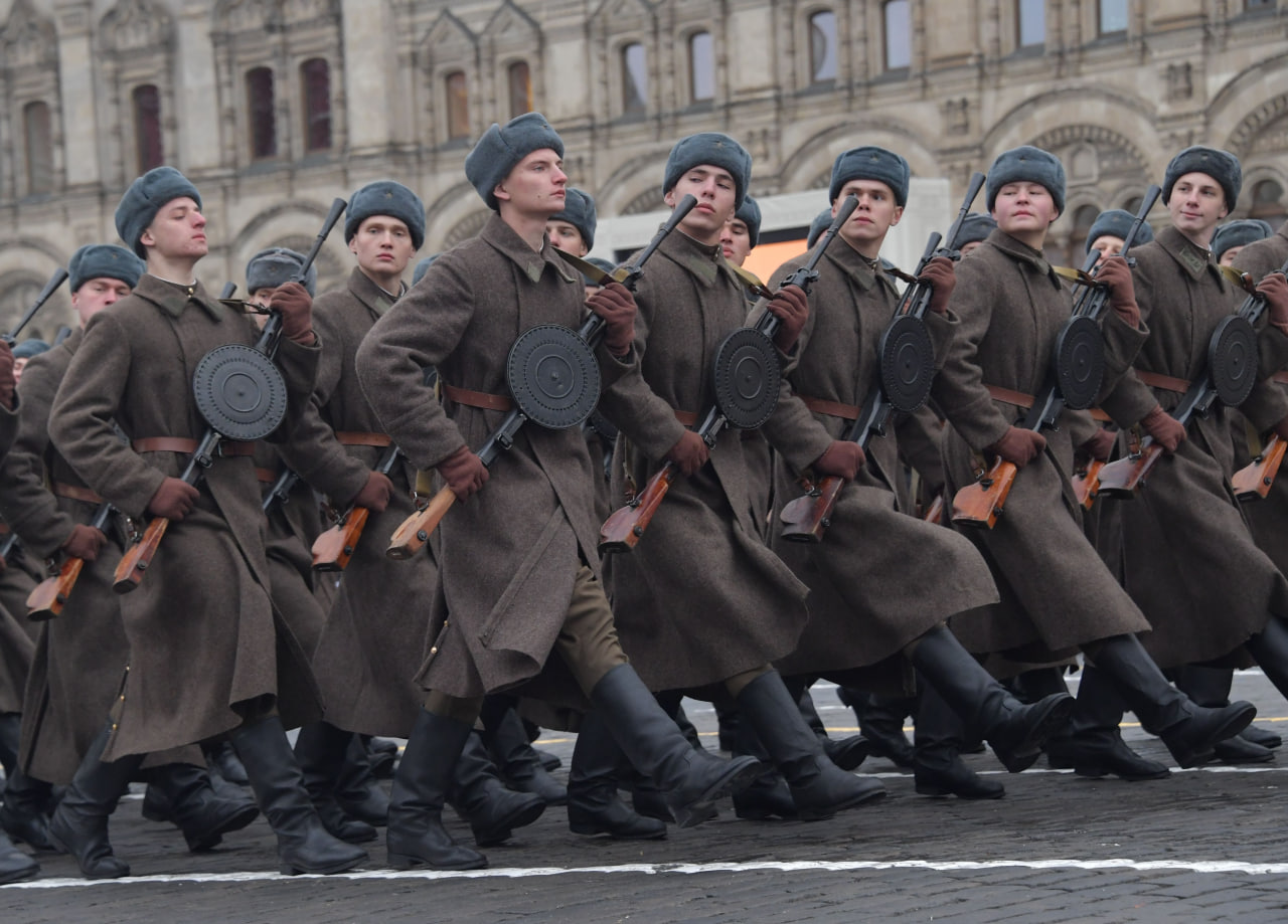 Реконструкция исторического парада 7 ноября 1941 года на Красной площади. ФОТО: Komsomolskaya Pravda