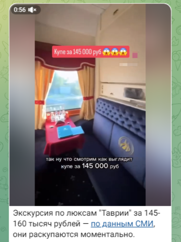 Блогер показала, как роскошествуют чиновники в России. Поездка в купе за 150 тысяч рублей - для них не проблема, билеты расходятся в момент. Между тем на южном побережье Крыма уже арендованы все люксовые виллы - вплоть до конца ноября 2024-го.