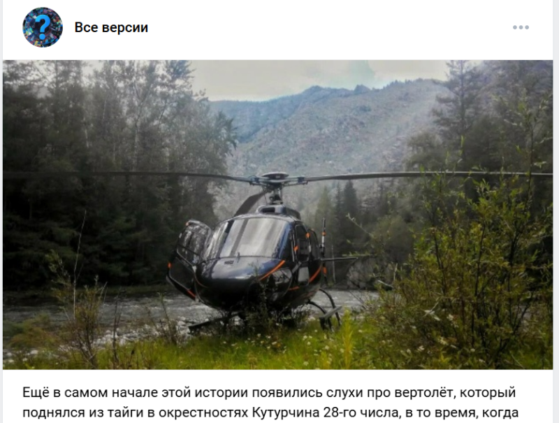 Жители Кутурчина прояснили загадку, они рассказали журналистам, что за домом супругов находится оборудованная вертолётная площадка, принадлежащая давнему другу семьи по прозвищу Басман. Он несколько лет назад построил секретную базу в глубине тайги, у верховья реки Мина.