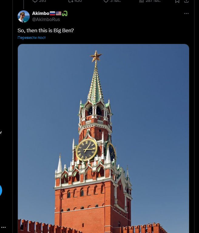 "Тогда это Биг-Бен?" - спросил пользователь с ником Akimbo, прикрепив фото Спасской башни.