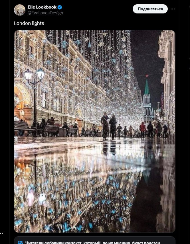 Появившаяся в социальной соцсети X фотография Никольской улицы в Москве с подписью "Огни Лондона" вызвала бурное обсуждение. Пользователи начали искать в столице Биг-Бен и другие достопримечательности Лондона.