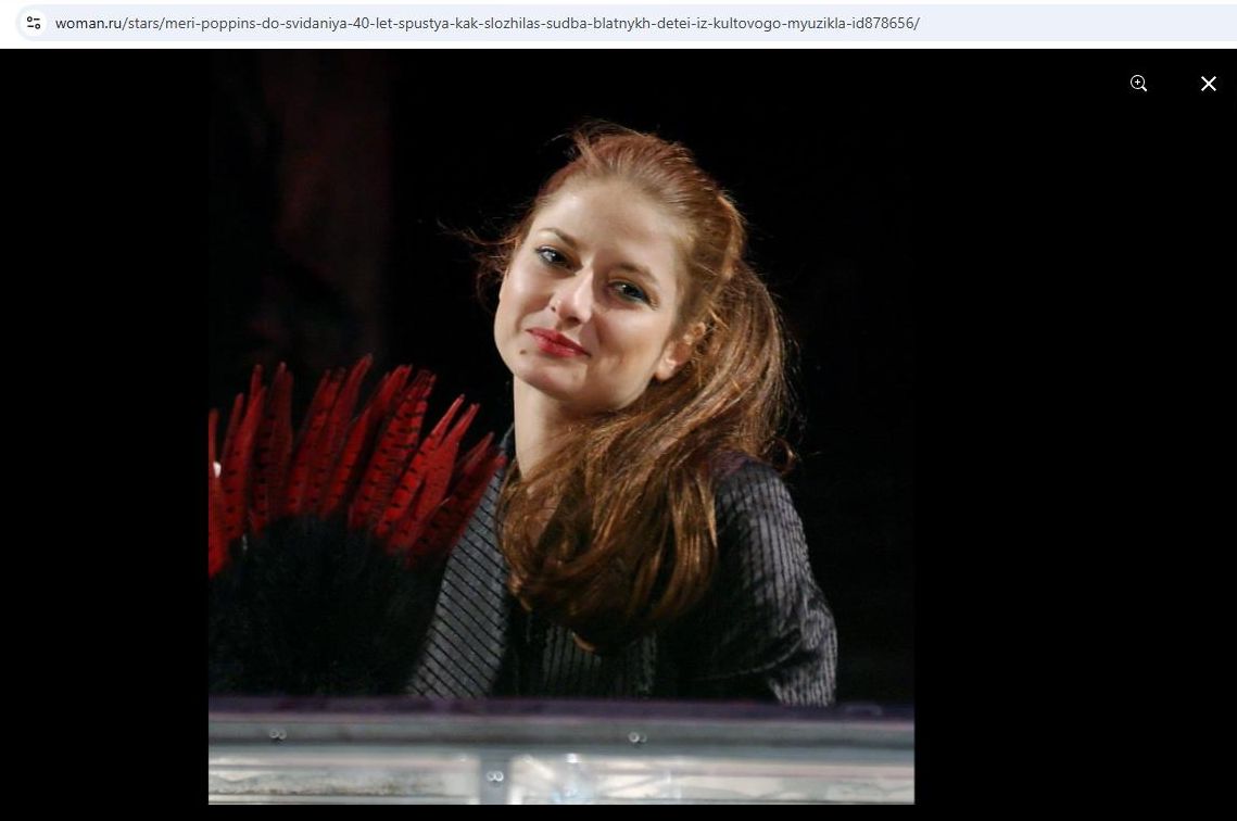 Взрослая Анна Плисецкая. Скриншот: интернет-сайт https://www.woman.ru/stars/meri-poppins-do-svidaniya-40-let-spustya-kak-slozhilas-sudba-blatnykh-detei-iz-kultovogo-myuzikla-id878656/