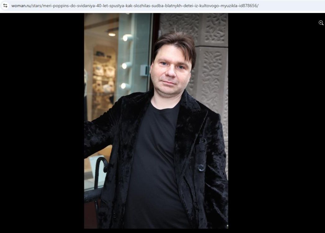Филипп Рукавишников, наши дни. Скриншот: интернет-сайт https://www.woman.ru/stars/meri-poppins-do-svidaniya-40-let-spustya-kak-slozhilas-sudba-blatnykh-detei-iz-kultovogo-myuzikla-id878656/