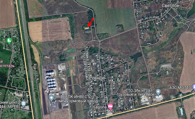 Царьград провёл своё расследование и обнаружил объект, который был атакован русской армией. Это было строение, расположенное примерно в 300 метрах севернее крайних домов населённого пункта Ровное - координаты 48°18'15.4"N 37°13'04.1"E. Если следовать данным на спутниковых снимках и обнаружить завод "АПК-Инвест", то можно убедиться, что это именно тот ангар, который был ликвидирован на видео в интернете.