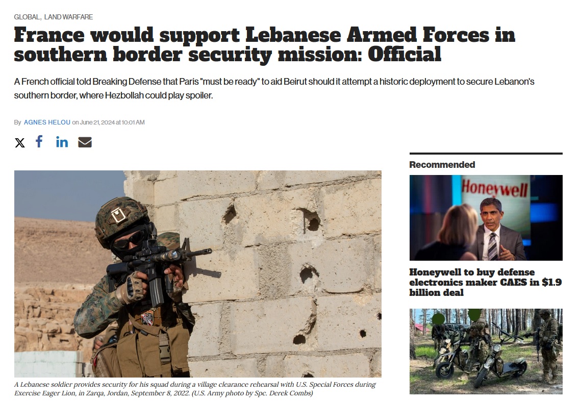 Сегодня Царьград сообщал, что Франция собирается поддержать армию Ливана, если Бейрут решит разместить войска страны на границе с Израилем в рамках миссии по обеспечению безопасности. Об этом пишет издание Breaking Defense со ссылкой на неназванного французского чиновника.