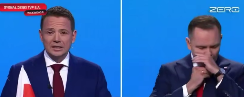 Кандидат в президенты Польши Кароль Навроцкий что-то понюхал во время прямого эфира, закрывшись ладонью
