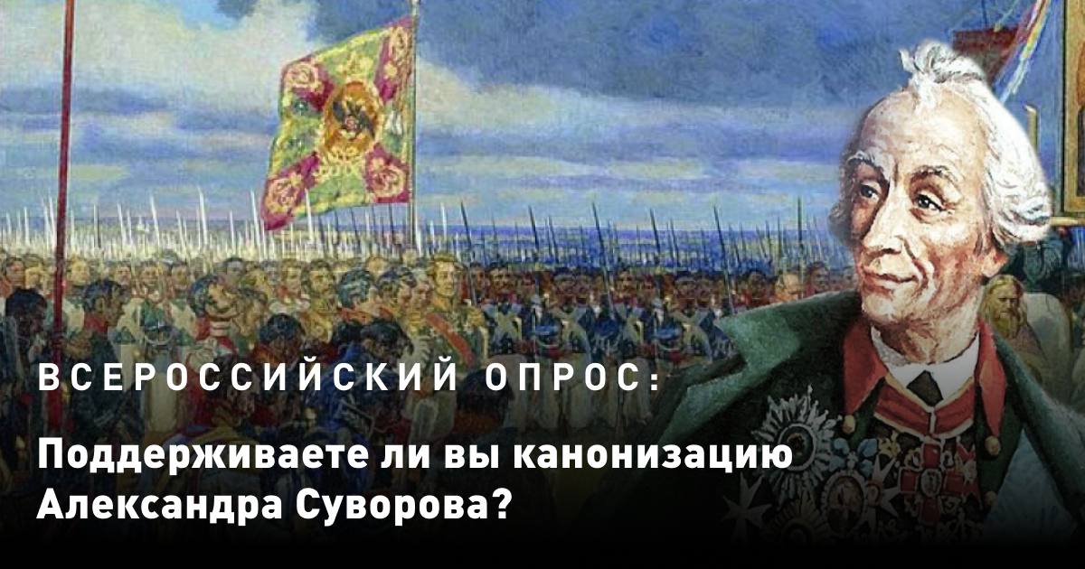 Русской Православной Церковью решается вопрос возможности канонизации генералиссимуса Александра Суворова. Голосование проводится и на страницах Царьграда, участие в нём приняло более 5 млн человек.