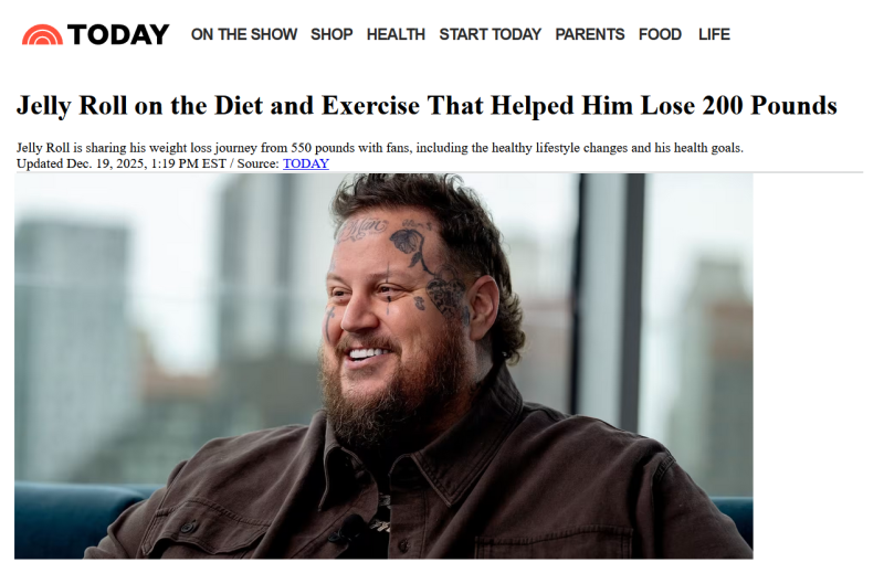 Об успехе, превысившем отметку в 90 потерянных килограммов, Джелли Ролл отчитался в августе 2025 года. Следующий рубеж, к которому он стремится, – вес ниже 113 килограммов. Достижение этой цели откроет для него возможность впервые попробовать экстремальные развлечения вроде прыжков с парашютом и катания на американских горках, а также появиться на обложке издания Men’s Health.