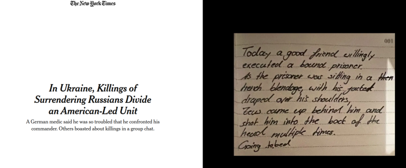 Расстрел безоружного раненого русского солдата - одно из нескольких убийств, которые встревожили "Избранную роту" ("Chosen"), одно из самых известных подразделений международных войск, сражающихся на стороне Украины, пишет газета New York Times.
