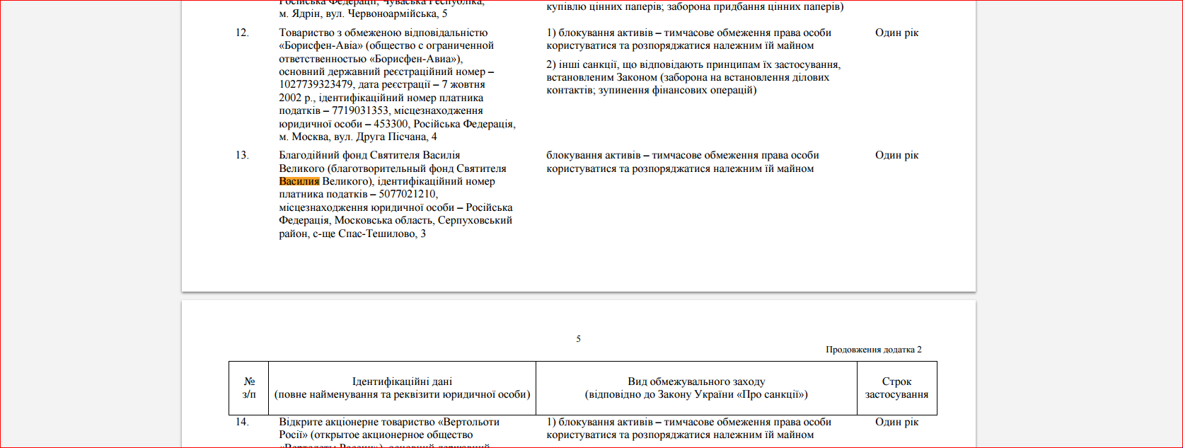 Украина расширила санкционный список: Фонд Святителя Василия Великого также попал под санкции
