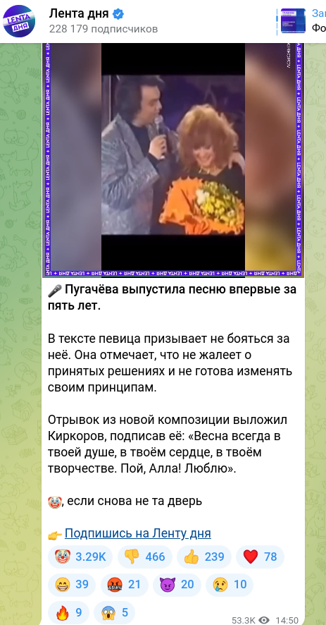 Певец Филипп Киркоров поместил у себя в соцсети новую песню Аллы Пугачёвой. Но только ещё больше разозлил народ.