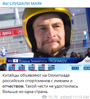 Организаторы Игр, представляя спортсменов из разных стран, только русских называют по имени-отчеству. Так, например, объявляя выступление прыгуна с трамплина из России Романа Трофимова, диктор назвал его Романом Сергеевичем.