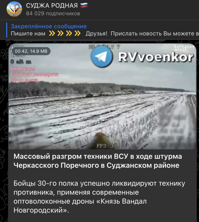 Скриншот: t.me/rodnaya_sudzha/12598