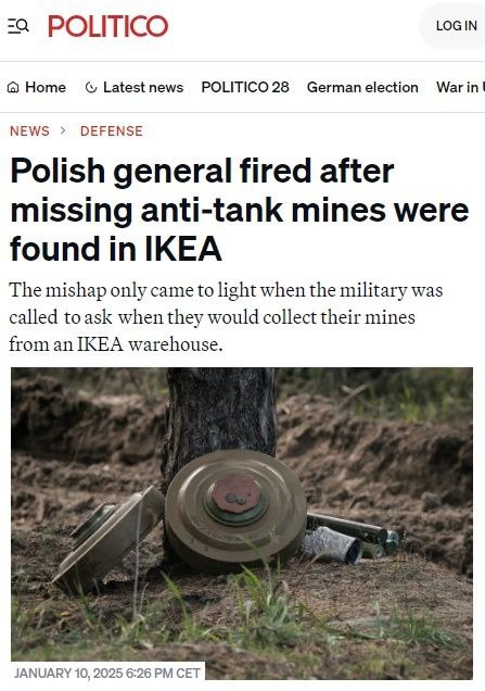 Шведско-нидерландский магазин мебели IKEA обратился в Минобороны Польши с необычным вопросом: "Когда вы заберёте свои мины?", чем поставил руководство военного ведомства в тупик. Оказалось, что магазин нашёл боеприпасы, которые потерял польский генерал.