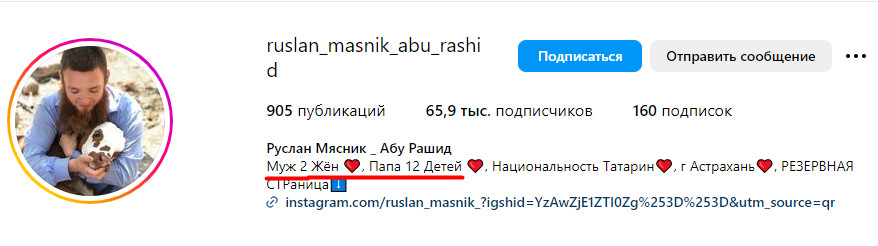 Блогер живёт в Астрахани. В его "инстаграм"* написано, что он муж двух (!) жён и папа 12 детей. Как это вообще возможно - по поводу двух жён? Или это тоже провокация?