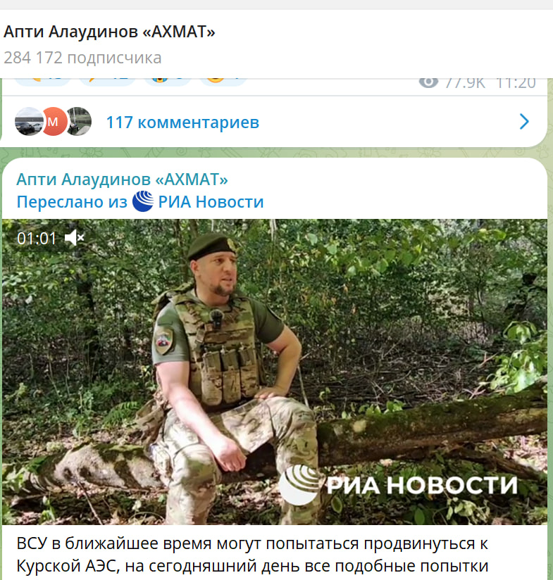 СКРИНШОТ: АПТИ АЛАУДИНОВ "Ахмат"/ТЕЛЕГРАМ
