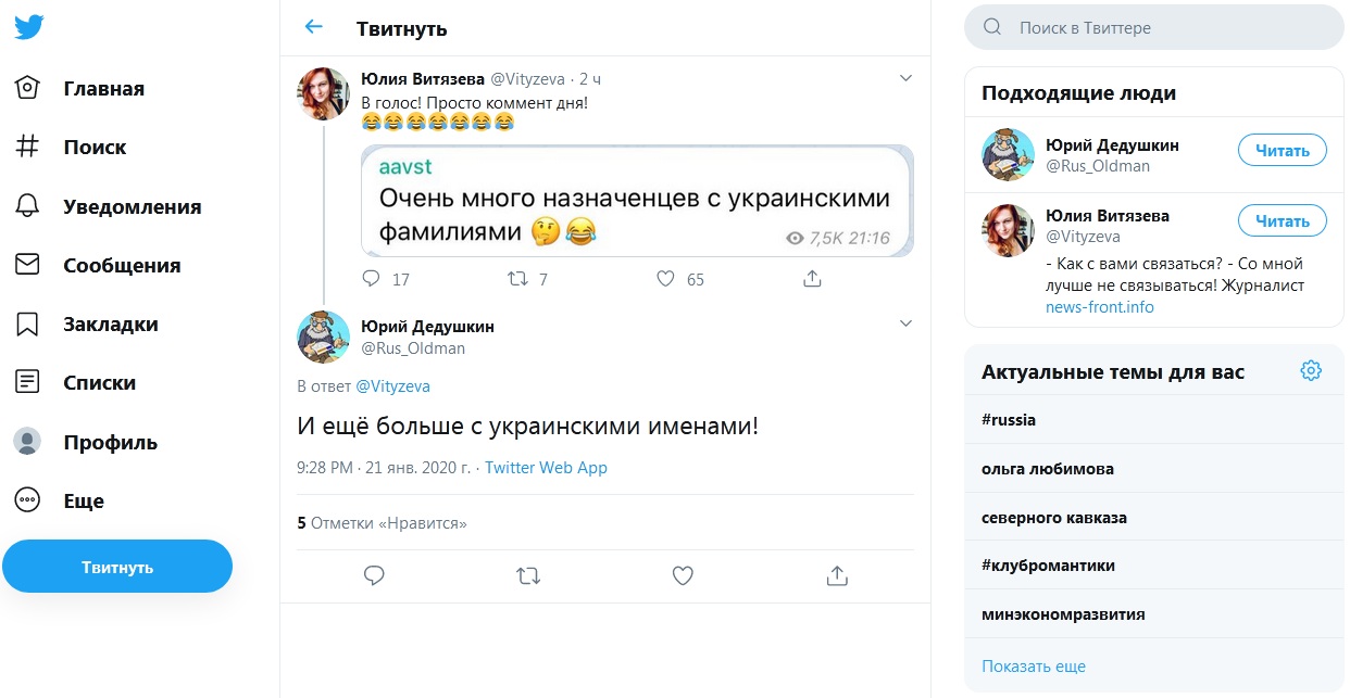 "И ещё больше с украинскими именами!" - смеётся в Twitter Юрий Дедушкин @Rus_Oldman