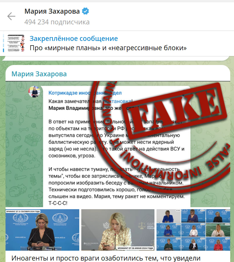 СКРИНШОТ: МАРИЯ ЗАХАРОВА/ТЕЛЕГРАМ