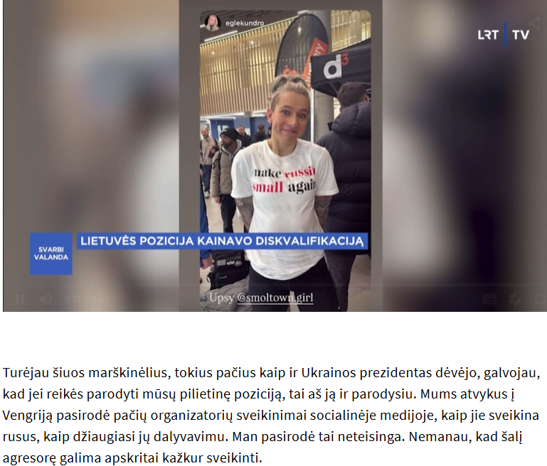 "Комплекс карликовых стран": Литовская спортсменка с оскорблениями России на груди вылетела с соревнований