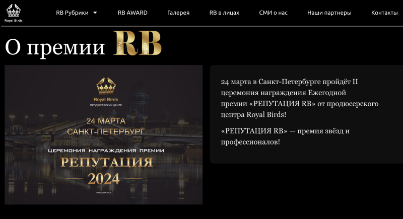 ФОТО: СКРИНШОТ СТРАНИЦЫ САЙТА RB-PREMIYA.RU