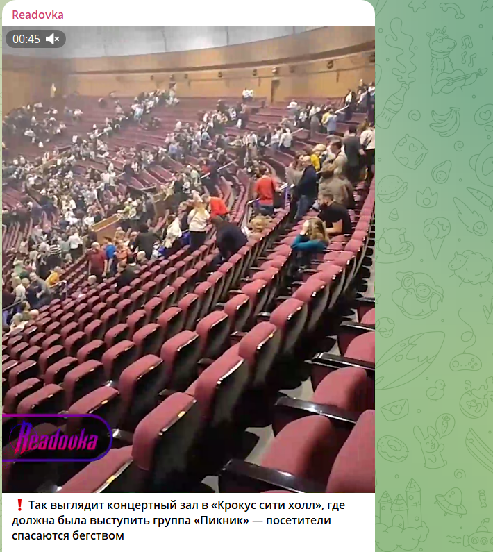 В здании "Крокус Сити Холла" произошёл теракт на концерте группы "Пикник". Сообщается о том, что есть погибшие и раненые.