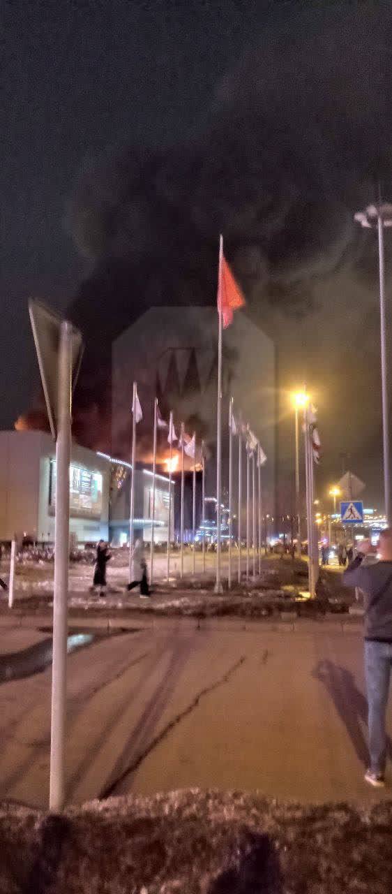 Сразу после начала стрельбы зрители попытались покинуть посещение, однако некоторые из них погибли. Телеграм-канал Baza сообщает о как минимум 12 убитых людях, однако эта информация не подтверждена. Само здание "Крокус Сити Холл" загорелось, сейчас над ним виднеются клубы чёрного дыма.