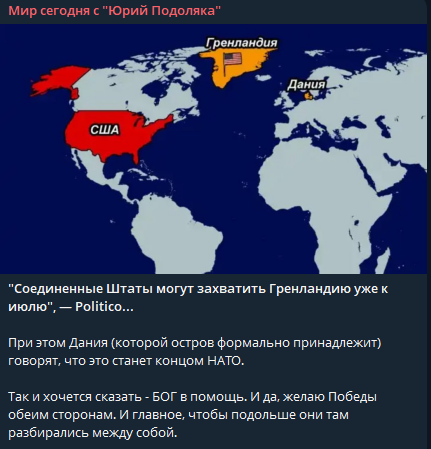 Премьер-министр Дании Метте Фредериксен предрекла конец НАТО, если США попытаются захватить Гренландию. Подоляка объяснил, как это будет – "Главное, чтобы подольше".
