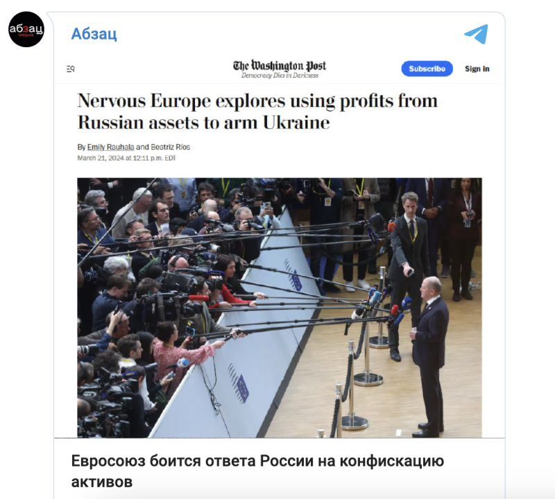 Однако в законе прописана необходимость согласования действий с союзниками. В то же время Европа вряд ли пойдёт на такой шаг, как конфискация русских активов, отмечает Associated Press. По мнению западных аналитиков, в ЕС опасаются нарушать международное право и очень боятся ответных мер России.