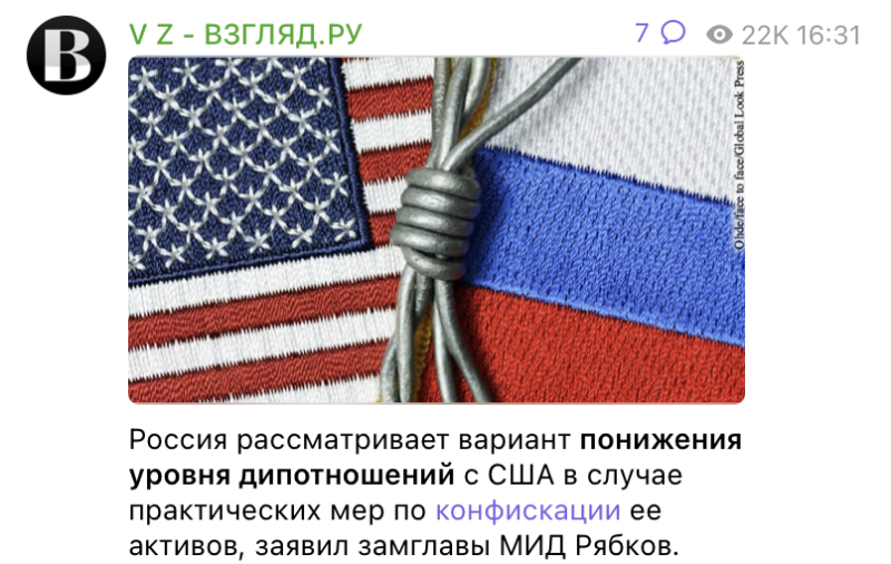 Понижение уровня дипломатических отношений - ещё одна ответная мера, к которой могут прибегнуть в России. Фото: t.me/vzglyad_ru