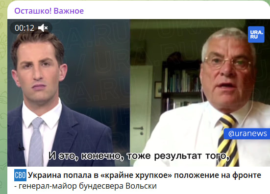 В целом ситуация для киевской армии складывается буквально критическая, о чём ни раз заявили многие западные издания. Генерал-майор бундесвера Вольски констатировал "хрупкое положение" украинцев на фронте:
