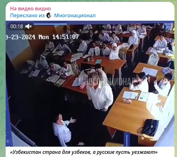 До уровня международного скандала школьный инцидент поднялся стремительно. В Сеть попало видео из класса, его сумели раздобыть и распространить в Сети родители пострадавшего мальчика. Уроки этим преподавателем в этой ташкентской школе ведутся исключительно на узбекском языке. Русский мальчик чего-то недопонял, попросил дать ему пояснения на русском. В качестве ответа узбечка принялась выволакивать ребёнка из класса, отвешивая тумаки.