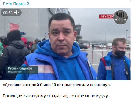 На снимке канала - террорист Шамсидин Фаридуни 1998 года рождения (есть жена и восьмимесячный ребёнок). Как заявил сам изверг во время допроса, он решился на убийство безоружных мирных людей за 500 тысяч рублей, которые ему обещал некий "помощник проповедника". Тогда же стала появляться информация, что этого же человека видели незадолго до трагедии в "Крокус Сити Холле".