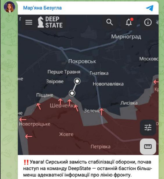 Сырский вместо стабилизации обороны начал наступление на команду Deep State - последний бастион более-менее адекватной информации о линии фронта. [Сейчас собираются] мобилизовать команду Deep State в пехоту их. Нет людей - нет проблемы. Обращение к СБУ и правоохранителям по разглашению информации (нечего здесь OSINT играть). Всякая дискредитация проекта (у Генштаба своя правда и "контролируемая" ситуация). Закрытие проекта (зачем все эти карты? Достаточно лживых докладов),