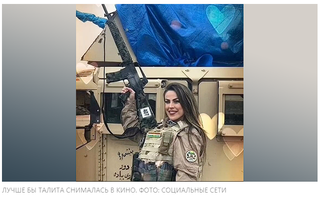 И вот ещё одна "гусыня", которая толком и повоевать не успела. Талита ду Вале из Бразилии работала моделью и актрисой. На "сафари" она поехала, уже имея боевой опыт в Ираке, где воевала на стороне курдов. Но актриса даже не добралась до фронта: спустя всего три недели после того, как девушка въехала в страну, её вместе с другим бразильским наёмником Дугласом Буриго накрыло ракетным ударом.