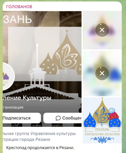На днях Рязань прогремела на всю Россию со своим весьма странным логотипом. Управление культуры города отчего-то решило поместить на него купола православного храма. Всё бы ничего, однако кресты умельцы зачем-то решили стереть. Вместо них над куполами появились непонятные кругляши. Но и это ещё не всё. На других логотипах из этой же серии на купола православного храма натянули медицинскую маску, а следом ещё и надели тёплую шапку. Вот такой вот зимне-болезный вариант.