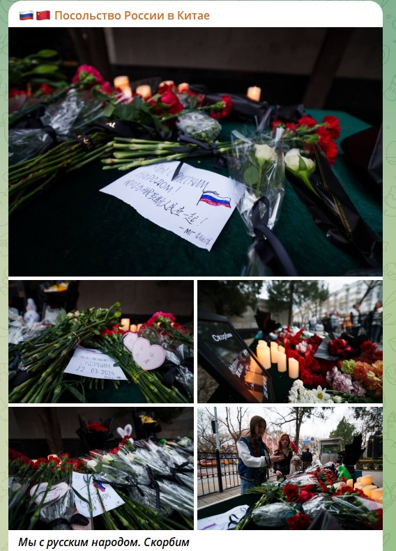 "Китай выступает против всех форм терроризма, решительно осуждает террористическую атаку и твёрдо поддерживает усилия властей РФ по поддержанию национальной безопасности… От имени правительства и народа Китая я хотел бы выразить глубокие соболезнования в связи с погибшими, а также выразить искреннее сочувствие пострадавшим и их семьям", - пишет в своей телеграмме лидер Китая Си Цзиньпин.
